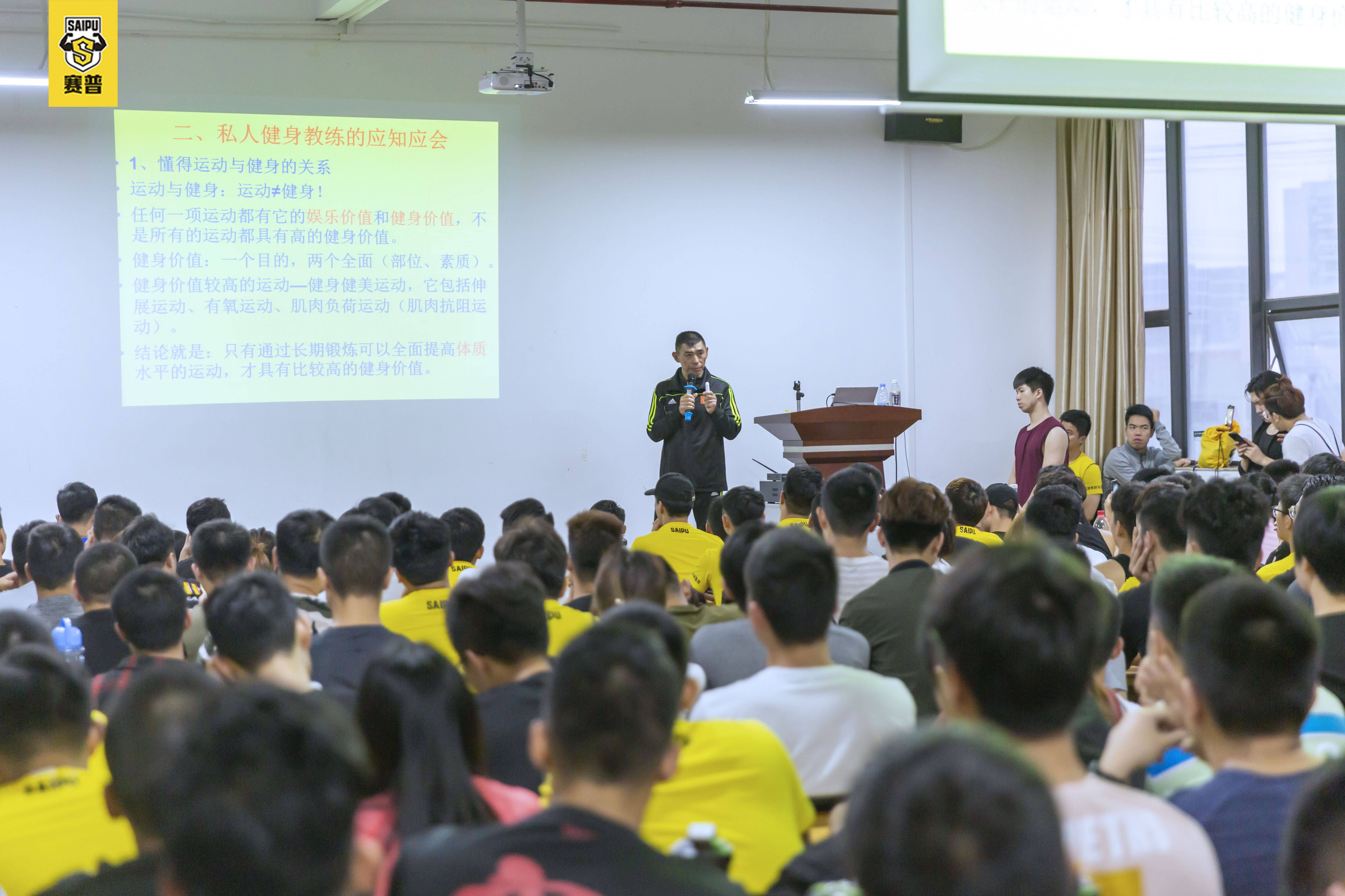 世界冠军导师,国家队主教练,北京健美协会副会长王严老师,带着自己的高级健身健美技术来到赛普学院深圳校区分享。同学们热情高涨,超大的理论教室提早一个小时就站无虚席,大家对于实践认证的高级技术都求知若渴,对于王严老师的授课也是赞不绝口。由于同学们太过于热情,以至于其他校区的师生都在询问老师的开班情况。在未来一个月时间,还会陆续在赛普其他校区带来王严老师的干货,大家敬请期待。